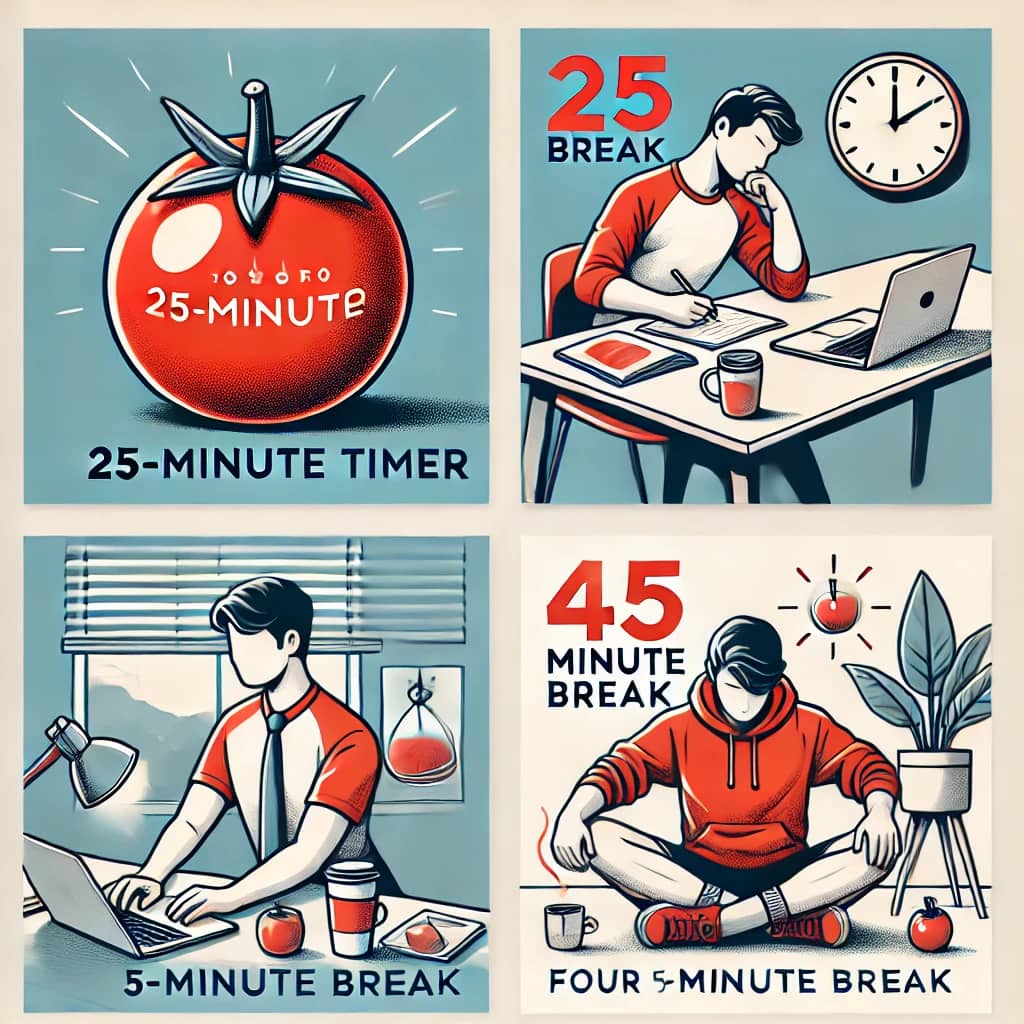 تکنیک پومودورو با تقسیم زمان مطالعه به بازههای ۲۵ دقیقهای و استراحتهای کوتاه، به شما کمک میکند که تمام توجه خود را بر روی مطالعه متمرکز کنید و از حواسپرتیهای احتمالی مانند تلفن یا اینترنت جلوگیری کنید.